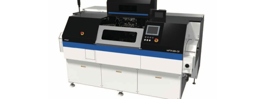 Kelsterbach, 27. Februar 2020 – Die Automatisierung von Prozessen nach der SMT-Phase kann jetzt mit sehr hoher Geschwindigkeit umgesetzt werden. Die FUJI EUROPE CORPORATION GmbH hat für diesen Produktionsabschnitt eine neue multifunktionale Bestückplattform auf den Markt gebracht: Die sFAB-Alpha vereint die Funktionalität von drei Maschinen in einer und unterstützt die integrierte Handhabung mehrerer Teiletypen. Sie bestückt Axial-/Radial- Bauteile und Jumper in effizienter Weise. Die sFAB-Alpha benötigt wenig Platz, reduziert Arbeitsaufwand und sorgt für schnellere Umrüstzeiten.