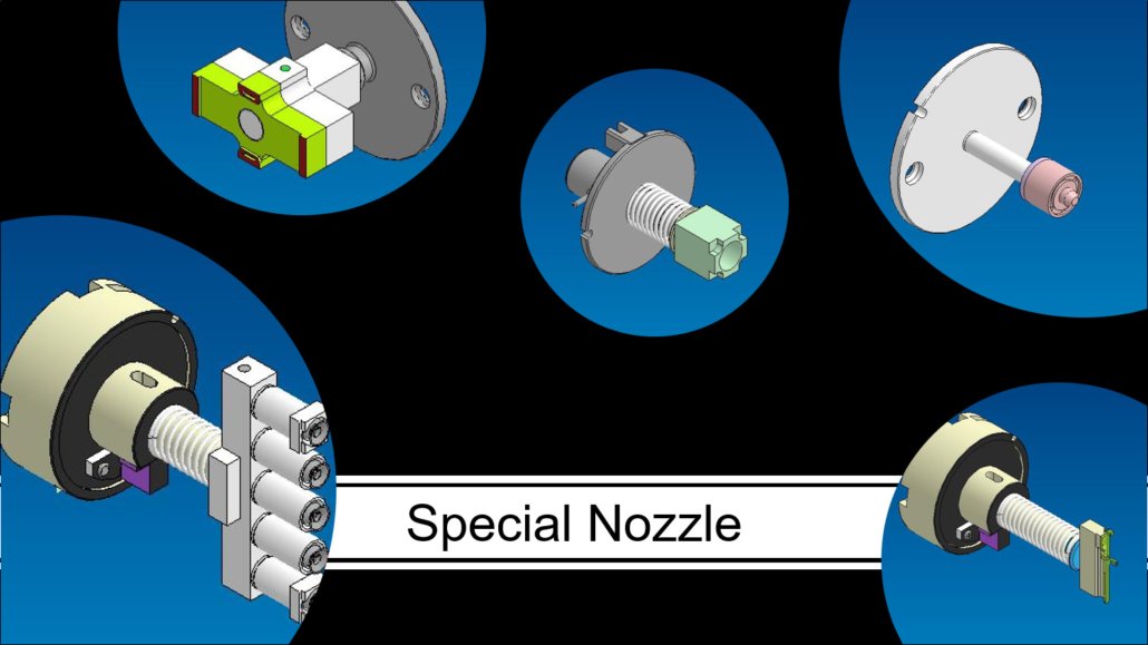 Special nozzles, mechanical chucks and Special feeders